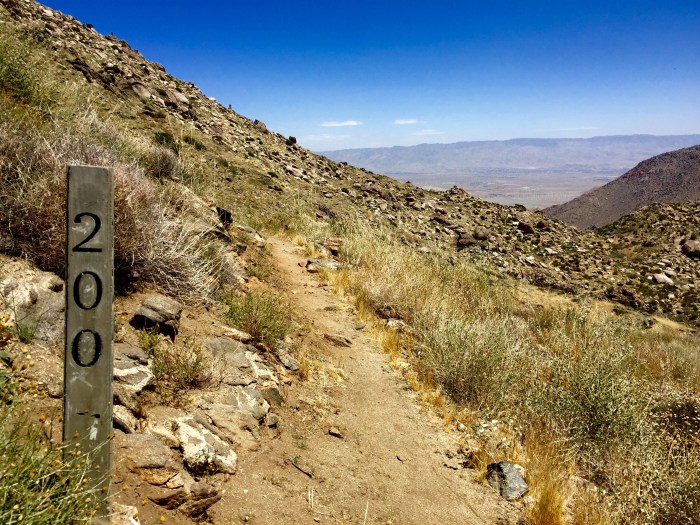 Another major milestone. Around noon we reached another significant milestone, passing the 200 mile marker. The downhill was long but the gradient was comfortable and I was making good progress towards the desert floor below and trail angels, Ziggy and the Bear. At some point during the hike it became windy and then it got really windy and then it just went absolutely mad and the desert seemed like it was trying to self destruct. At times it became hard to make any headway at all. On trail to Ziggy and the BearAfter an hour of staggering and struggling across the wind swept valley floor we finally made it to Ziggy’s where there was a shower, food, fresh coffee and a respite from the wind. From here we could also arrange a shuttle to get us around the Lake Fire closure. Tomorrow would be a travel day. It seems that we had chosen a good day to be off trail … a storm was coming!