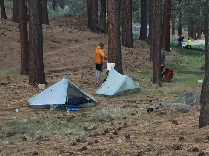 Camp at Landers Meadow and Chance trying to Yogi some food.