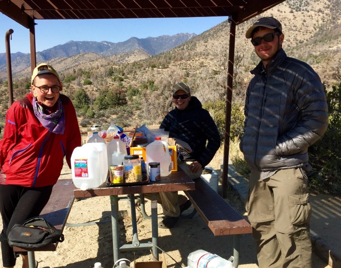 It certainly wasn’t my best nights sleep on trail. The wind persisted all night and even my industrial strength ear plugs weren’t able to muffle the constant flapping. One very curious thing did happen however … I woke up in the middle of the night and I was absolutely boiling hot, so hot in fact that I had to peel off layers. This is a first on the trail, but sadly I don’t think it was in any way correlated to a lasting shift in the climatic conditions. Two hours later I was freezing cold and had to put everything back on again. I suspect that it was simply some kind of pre-menopausal flush … Oh, what joy! Being “middle-aged” really does provide no end of excitement. I guess the psychotic mood swings and vaginal dryness won’t be far away now. Who wouldnt want to linger here?When I crawled from my tent the White Rabbit was up to his usual routine … “Eggsy, Shorts and Easy have already left” he crowed and gesticulated towards the abandoned windy spots … It was 6am! My mind screamed “I don’t give a fuck!” Thankfully, my mouth miraculously delivered a more polite rebuff … “I am not in the habit of comparing myself with the behavior and actions of others” … I had no idea where that profound and somewhat pompous remark sprang from but it certainly seemed to have the desired effect. Chance left without breakfast and I enjoyed my hot oatmeal and coffee in peace. Perhaps the psychotic moods swings were closer than I’d imagined? Near the top of the morning’s climbThe morning started with a long and very windy ascent. After about 90 minutes I was over the top and then it was pretty much all downhill for the rest of the day. Chance and I had discussed hitching a ride into town to shower and do laundry. I was keen but now he was at least an hour in front of me and no doubt being propelled by his ravenous hunger. I reached the big water cache at Yellow Jacket Spring and stopped for a quick second breakfast. Ordinarily I would have lingered longer but I wanted to try to catch up with Chance so that we could head into town together. The Trail … Too good to rush!As I hurried along the trail I became aware that I was being sucked back into the “race”. I wanted to stop, take another rest and eat a little more, but this need to “keep up” was pushing me on. My mind was painting pictures of a pissed off Chance waiting at the bottom of the hill for me. I quickly concluded that this was the price I had to pay if you wanted to walk with someone that was a good 12″ taller than me. Perhaps it was too high of a price, there is certainly a far greater sense of freedom when you aren’t intertwined with someone else’s schedule. Maybe I just needed to find someone with a schedule (or at the very least, a leg length) more compatible with my own. Sticksnske !!I never did take that second break, instead I scurried on down the hill, as fast as I could on tired legs and feet. As I lost elevation the temperature crept higher and I was soon back in prime Rattlesnake territory. I had my headphones in which left me without one of my strongest defenses … Not being able to hear them rattle meant that I had to really pay attention to where (and on what) I was putting my feet. On more than one occasions I was startled by the ubiquitous Sticksnake! Thankfully it’s totally harmless. Left to Right: Penny, Deluxe, EggsyI reached Walker Pass just after 4pm. I’d covered 21.2 miles in under 8 hours! Eggsy, Bacon, Shorts, Penny and Deluxe were all there, tucking into a big box of random trail magic. I ate a couple of bananas and hang out for a moment. Chance, it transpired, had already caught a ride into town. I was annoyed at myself for rushing. I decided to give the hitching malarkey another whirl. A few days previously I’d over heard another hiker referring to his walking poles as his “hitching sticks” … I curious to test this new theory. I guess the “hitching sticks” are the only things distinguishing me as a hiker rather a hobo. Previously my poles had always been packed away, perhaps this was why I want having so much trouble. The first dozen or so cars yielded nothing. I was becoming despondent when I had a flash of inspiration … take of the sunglasses, make eye contact. I did exactly that and to my absolute amazement the next car stopped! Sister Motel to Bates!The very nice man took me the entire 40 miles into Lake Isabella and we discussed the Trump for much of the journey. At some point during the ride I picked up phone service and a text message from Chance. He’d gotten a hitch in the opposite direction to Ridgecrest … “Hmmmm” I thought to myself. The very nice man dropped me at the Isabella Motel which he assured me was the best option in town, despite the fact that it looked as though it belonged to the same chain as Bates! When I checked, there right above my name was Butterfly and his crew … It’s amazing how the trail just seems to work things out for the best all by itself! By hiker midnight my laundry was done, my resupply taken care of, my body scrubbed clean and I was lying in bed, eating carrot cake and watching Pretty Woman on the tiny TV … I was as happy as a pig in shit!