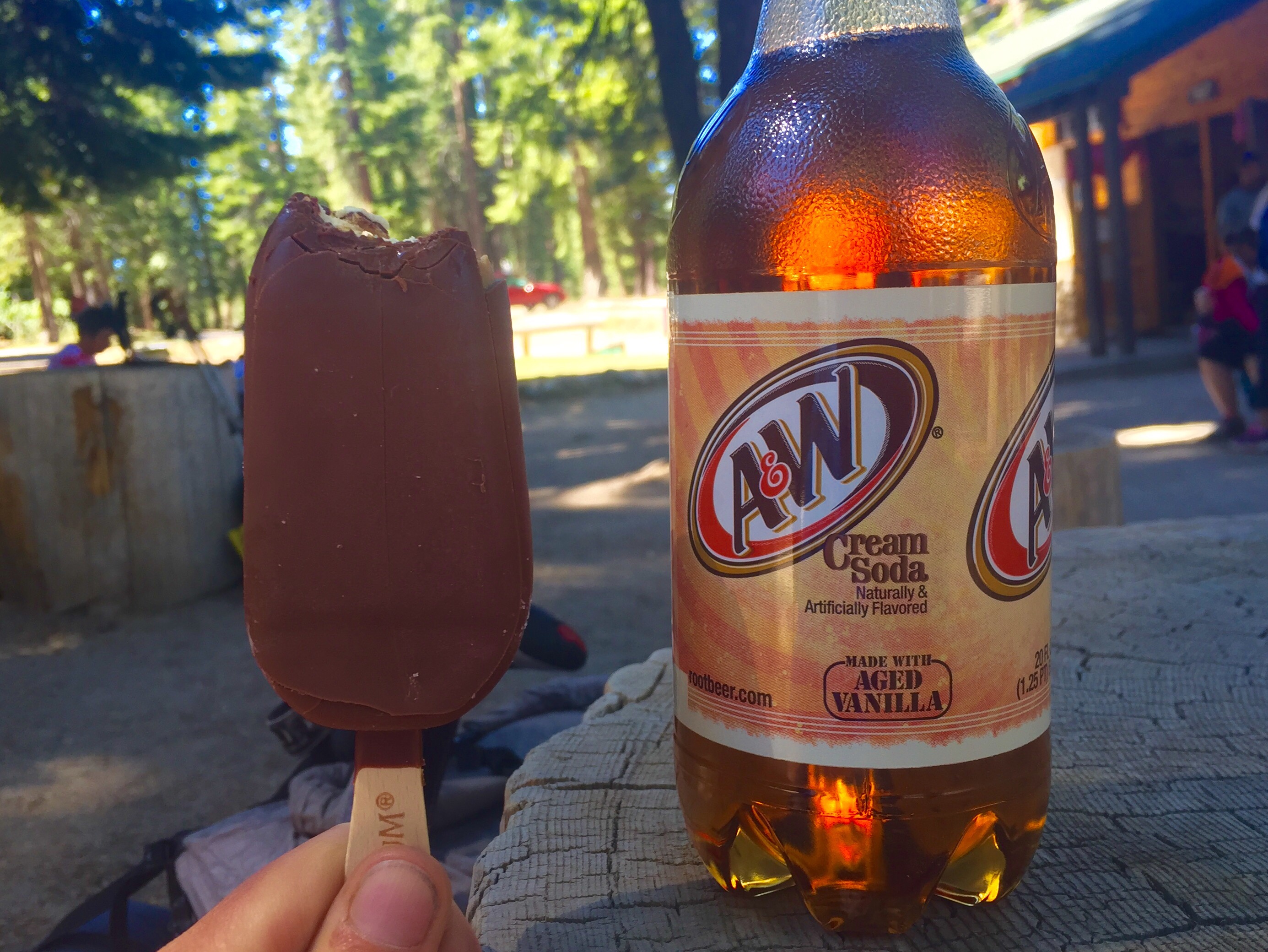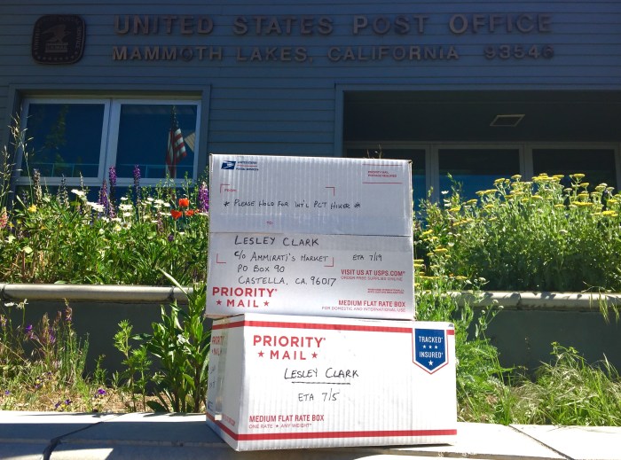 Reds Meadow … First sign of civilization in a long while!Butterfly, Turbo and I opted for the relaxed start. Spreadsheet made a super early start, inspired by the promise of a big cooked breakfast and Internet connection at the Reds Meadow restaurant. I was really looking forward to and in need of a proper zero, a day of doing absolutely nothing. A true zero is an elusive thing. Once in town it is easy to become overwhelmed by all the fun and exciting things to do, eat and drink. Inevitably I end up walking all over town and not getting any of the rest my mind and body so desperately needs. This time I was determined to really “veg” out … I had to, I was both physically and mentally shattered!Number one priority when I hit a store!We reached town at around noon. Deluxe had once again been sucked into the vortex and was on his third night at the Travelodge. He was happy to let me share his room, just as well because there was hardly an empty bed in the whole town. I spent the rest of the day rushing between the post office, the grocery store and the hotel, frantically trying to arrange my resupply for both the next section through Yosemite and the rest of Northern California. Such are the additional challenges for an overseas thru-hiker! Finally, by almost 11pm my food was all boxed up and my laundry all taken care of. I fell into bed and slept like a baby.Wooly Mammoth … Thankfully I don’t need to worry about these on the trail!The next morning I took my boxes off to the Post Office. It required multiple trips because I could only carry two at a time. I met up with Butterfly and crew at Schat’s Bakery for lunch. They were heading back to the trail, but I needed to rest and recuperate. The Sierras had been a real ordeal. I managed to find myself a single room at the Motel 6. Armed with junk food and gallons of soda, I checked in just after lunch and spent the rest of the stay slumped on the bed, watching cheesy movies and stuffing my face with popcorn, chocolate and Gummi-Bears … It was absolutely heavenly!Boxes of food for further along the trail.