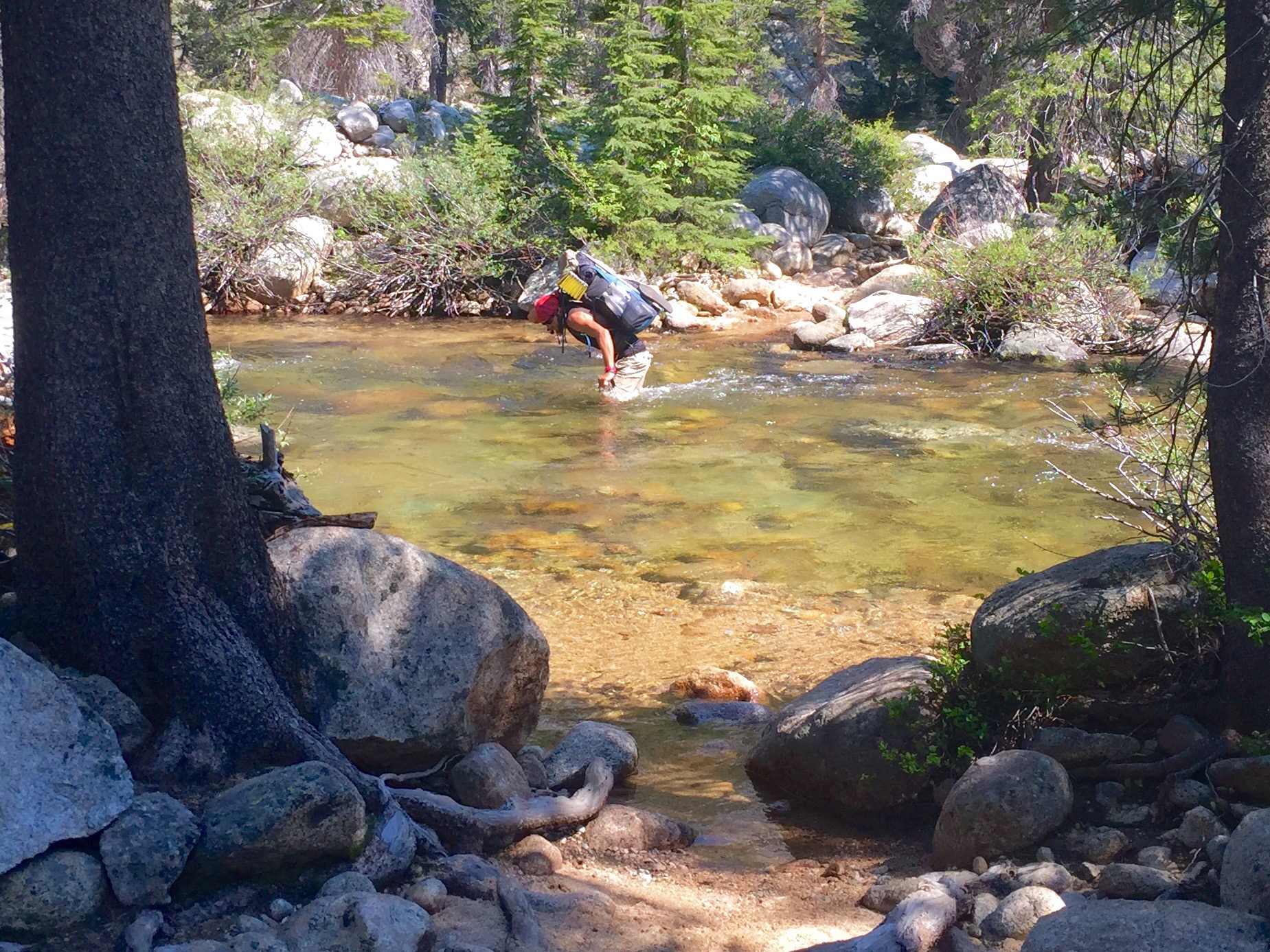 I’m not sure how or when I became such a firm believer in the notion that the trail would be easier after the High Sierras. I was starting to realise that I’d fallen for a false prophet. Yosemite was so much harder! On paper my day should have started with a straight forward 2,000ft descent over 3 miles. The reality was very different. The trail switched back and forth down a steep, wooded incline … or at least it should have done. The north facing slope was almost completely covered in massive pockets of snow which totally obliterated the trail. I bushwhacked my way straight down where I thought the trail should be. In the sun the snow was soft and slushy, in the shade it was icy, treacherous and ridiculously slow going. It took me absolutely forever to reach the bottom only to then face a 700ft climb back up!
