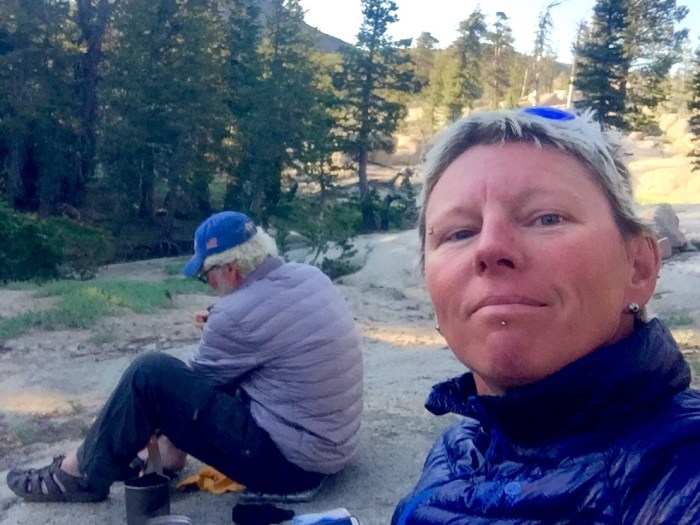 The day’s hike was just as it should be. For the most part it was very agreeable, there were a couple of challenging climbs, the ocassional patch of sketchy snow (which called for a little navigation), a couple of creek crossings that required focus and attention and some spectacular views. All in all it was pretty perfect and yet, much like the weather, it was also oddly monotonus in its perfection. I relieved the monotony with more podcasts. It seems that I am not alone in this need for entertainment and distraction, I noticed that more and more hikers were now plugging themselves in to something or the other. I had to confess to feeling a certain disconnect from the trail, but walking for hour upon hour along a 18″ strip of dirt that doesn’t really change too much is incredibly tedious. I suspected that the mental challenge of the trail was beginning to take shape.